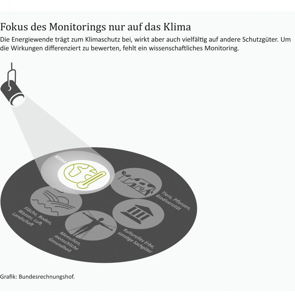Der Ausbau erneuerbarer Energien ist für eine treibhausgasneutrale Energieversorgung von herausragender Bedeutung. Gleichzeitig ist er mit negativen Umweltwirkungen verbunden. Knappe Flächen und Ressourcen werden in Anspruch genommen, die biologische Vielfalt wird beeinträchtigt. Die Bundesregierung kann nicht garantieren, dass die Energiewende die Umwelt so wenig wie möglich belastet. Denn für viele Umweltfolgen der Energiewende liegen keine oder nur unzureichende Daten vor.