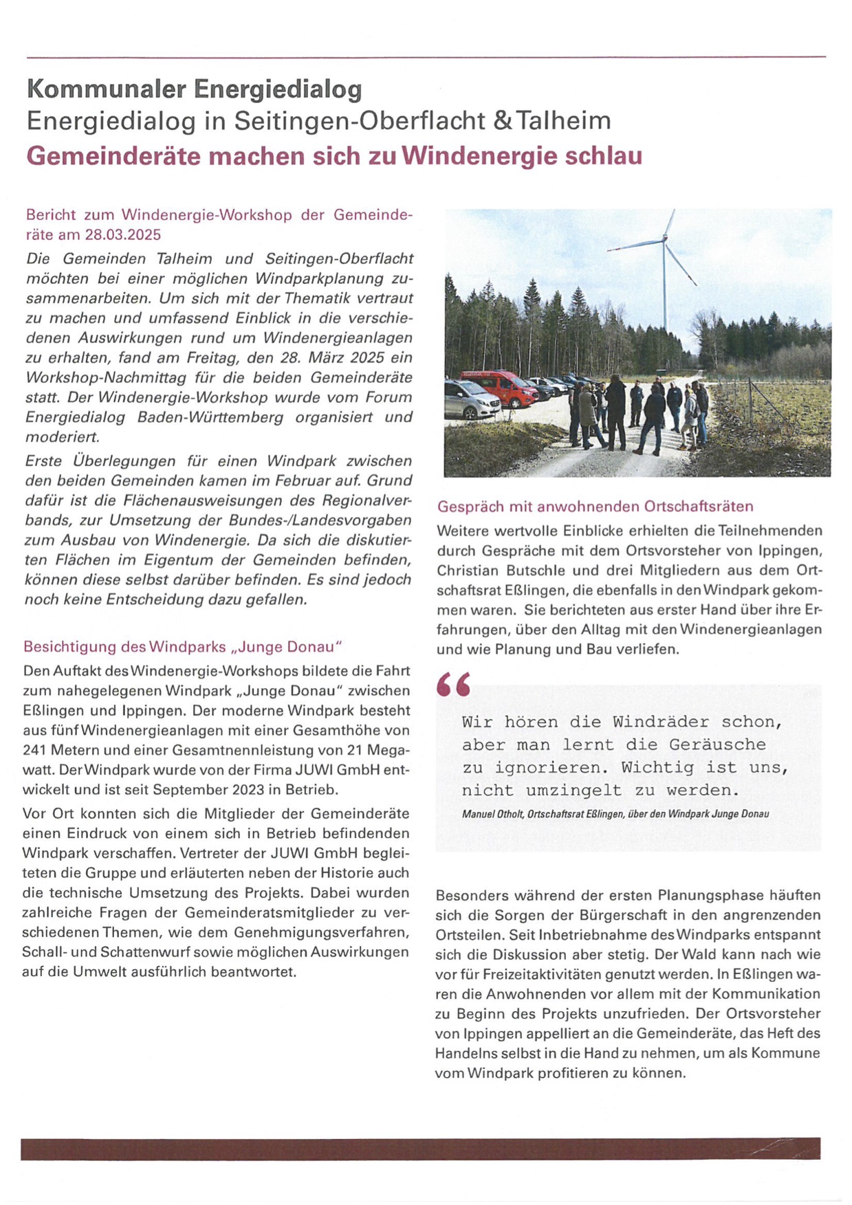 Der in der Gemeinderatssitzung am 10.04.2025 ausliegende Flyer, in der Form auch im aktuellen Gemeindeblatt abgedruckt, kündigt einen vom Forum Energiedialog moderierten Kommunalen Energiedialog an.
